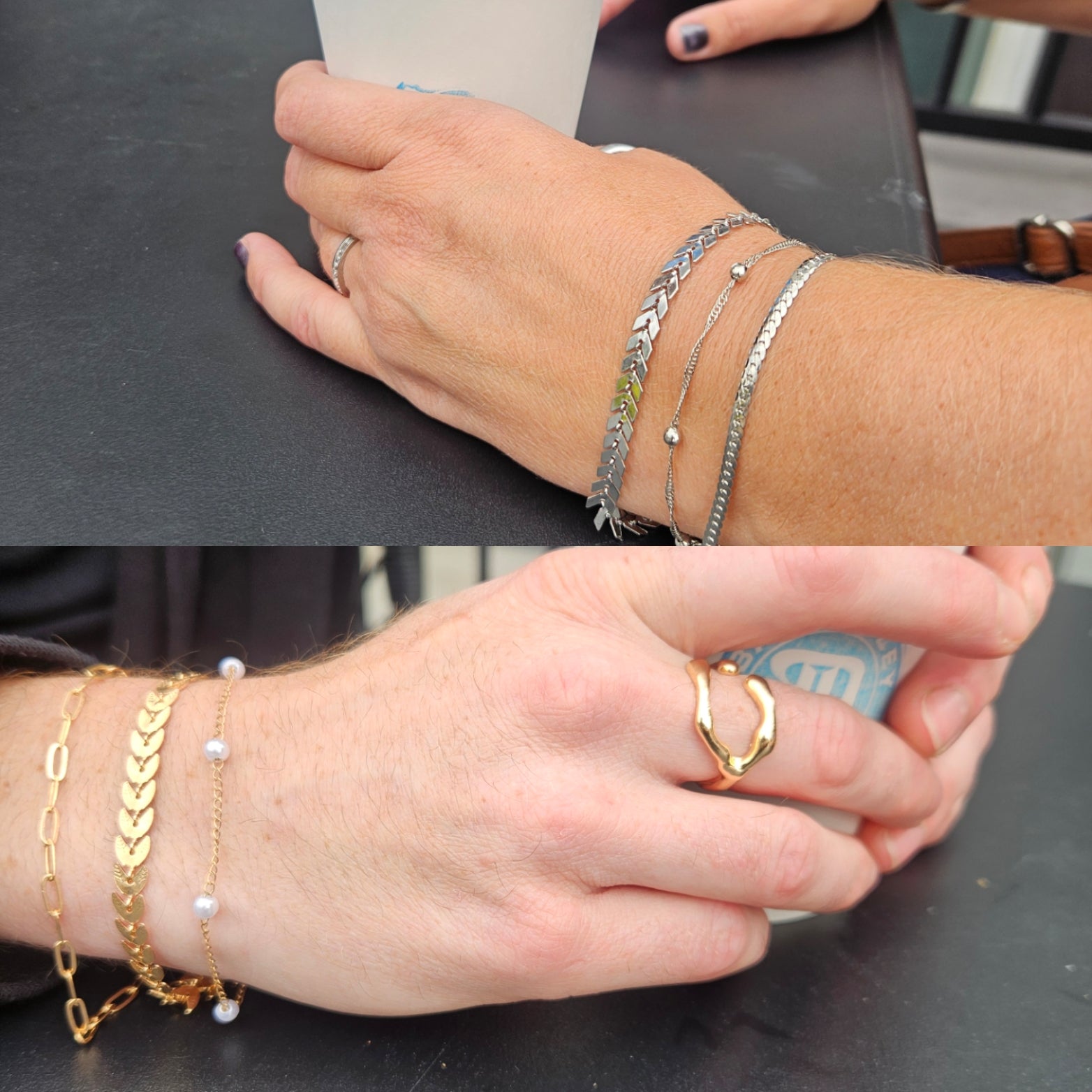 Create your perfect look with our stackable bracelets, available in both silver and gold. Whether you prefer a sleek, minimal stack or a bold, layered statement, these versatile pieces let you mix, match, and style them your way. Effortlessly chic on their own and striking when combined, they’re designed to move with your mood and elevate any outfit.